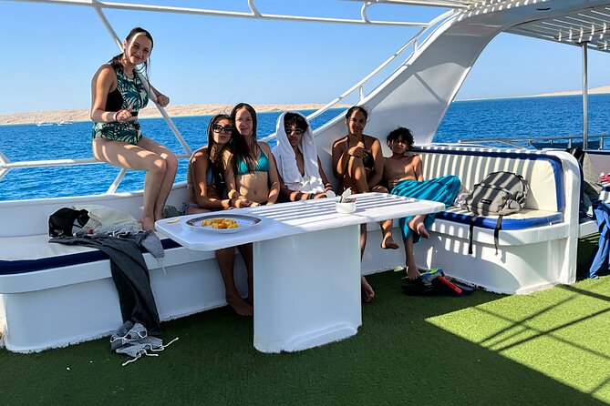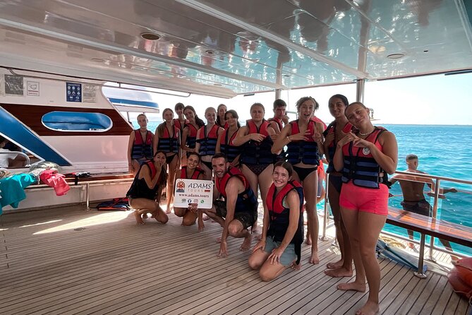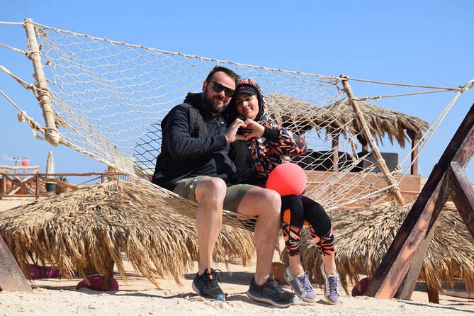 Explore the underwater world of the Red Sea on a snorkeling excursion to Paradise Island. This sea trip includes water sports like banana boats and a Floating Aqua Park, as well as a delicious lunch. Relax and soak up the sun while enjoying the beautiful scenery and crystal-clear waters. All necessary equipment is provided, and round-trip transfers are included for Hurghada accommodations. Don’t miss this chance to experience the best of Hurghada’s snorkeling and water sports in one convenient trip.
